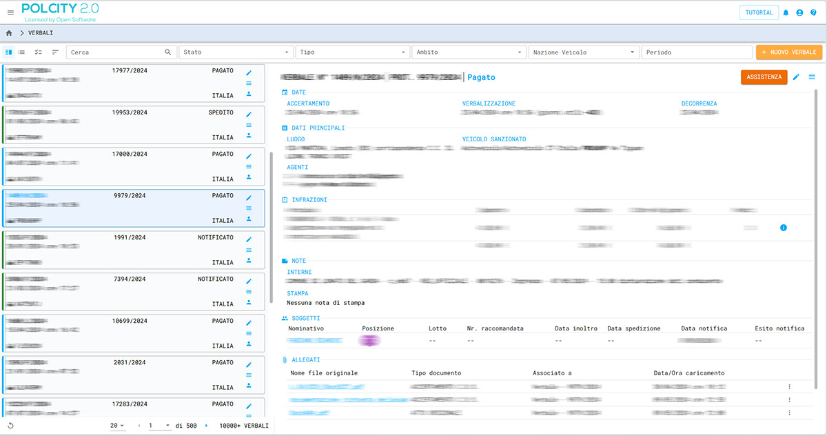 Il sistema consente la gestione completa delle sanzioni, dei pagamenti, delle rendicontazioni e delle statistiche, assicurando efficienza e affidabilità anche in presenza di elevati volumi di dati e accessi simultanei da parte di numerosi utenti.